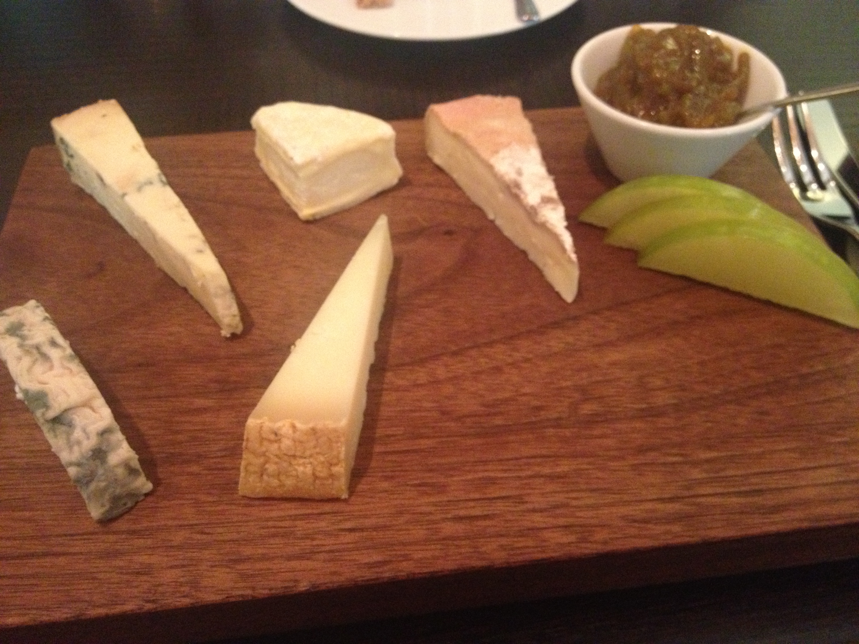 I, however, went for a selection of British cheeses served with oat cakes, runner bean chutney and cider apples. The selection was very well made, from creamy sheeps’ cheese through to blue cheeses it was a perfect little spectrum of the best kinds of British cheese, reminding us of our prowess in this field. The runner bean chutney was unconventional, but extremely tasty. To compliment this I, naturally, reached for the port; a Noval 20 year old Tawny Port from Duoro to be precise. This was lovely, it was sweet and heady but with a slightly nutty aftertaste.