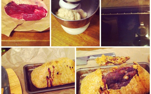 As well as being someone who spends more money than he should on wine and eating out, I also like to turn my hand at cooking up a storm in the kitchen. I particularly like trying out new, interesting or different recipes – not that I’m very good at sticking to them. I tend to get my ideas from watching some of the many cooking programmes that are on television, as well as a bit of internet research. One cooking technique that I’d recently seen was the technique of salt-baking where one essentially creates a salt and flour dough crust around what you are cooking, with the idea that the joint of meat or vegetable contained therein will retain its moisture and slow cook to perfection.