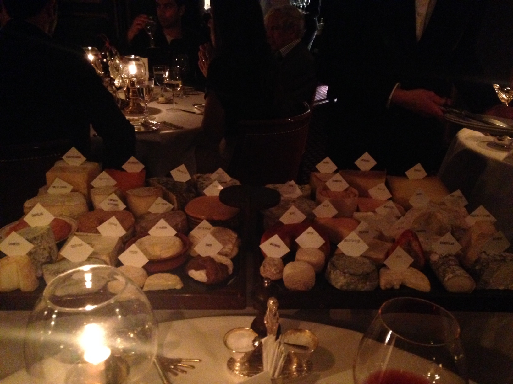 photo 10We had a little bit of an interval before the next course, which was very much needed. We were then presented with the cheese selection to end all cheese selections. Wow. We were taken through all of the varieties of cheese on this massive trolley, I opted for one creamy, one blue, one hard and one goats’. These was served with biscuits and assorted chutneys and pickles. To match with the cheeses we were given a 2007 Espirit de Chavalier from Pessac-Leognan, Bordeaux, which is Cabernet Sauvignon driven and the estate’s second wine. I was surprised to have a red wine served with the cheese, but was told that this was the French way and that it is the English that always want port! The wine itself was a deep, rich Bordeaux with a perfumed aroma and a hint of cedar wood to me. On the palate it was smooth, with balanced tannins. I must be more English then I thought because although the wine was nice, I really felt that I’d’ve loved a nice port!
