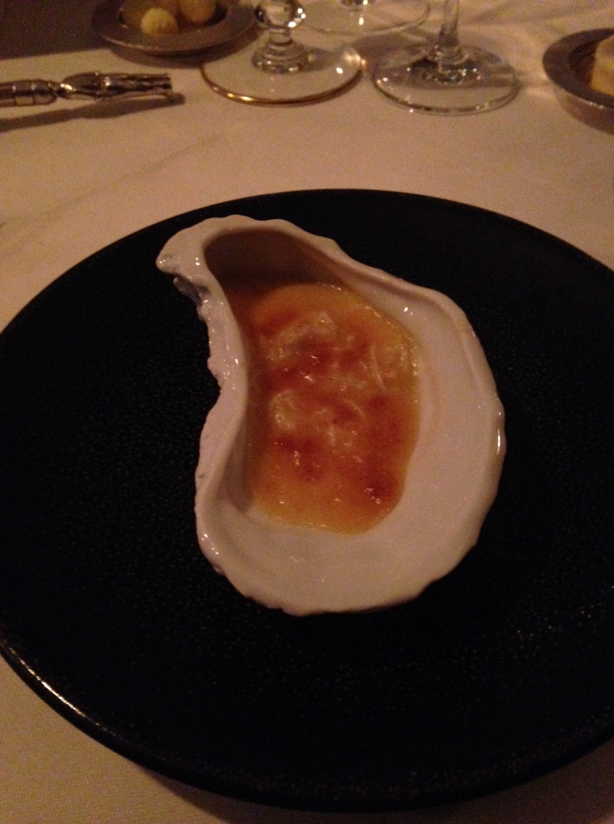 Now this isn’t the kind of  restaurants that one goes to on a whim. Well most people don’t, anyway. Tables are usually booked up about three months in advance, so around Christmas I started thinking about booking a table for a somewhat belated celebration that my wife and I promised ourselves when we bought our flat a couple of years ago. I knew what I thought I should expect when I arrived at the restaurant as I’d been watching Michel Roux’s Service on BBC for a few weeks and had seen how tough service is at the top level. For this special meal we decided to treat ourselves to the eight course Menu Exceptionnel with matching wines. After all, it was a celebration!