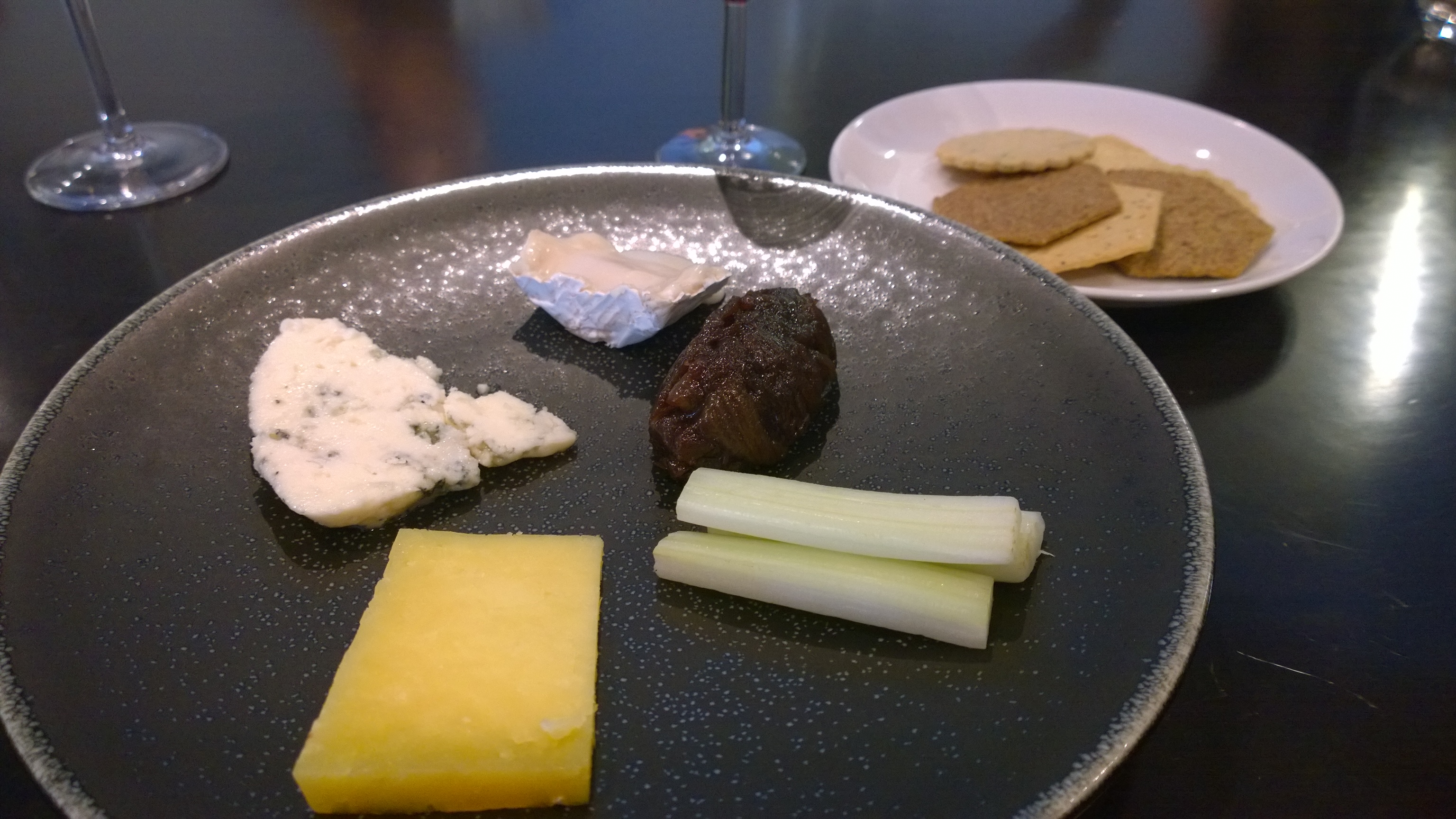For pudding I decided to go for the British Isles Cheese and Onion Chutney. I was given three cheeses, a single Gloucester, a blue cheese from (if I remember correctly) Cornwall and a goats’ cheese (I can’t remember where from!). There was a pretty quenelle of chutney, plenty of nice biscuits and some sticks of celery to accompany the cheeses. A nice glass of tawny port with the cheeses went down a treat too…