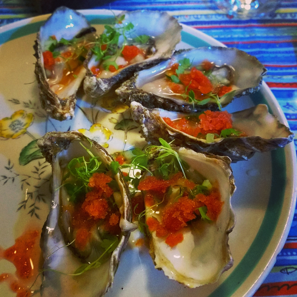 As mentioned above Wheelers do not have an alcohol licence, but they recommend visiting an off-licence across the road called The Offy. This is not your bog standard off-licence peddling Blossom Hill and Jacob’s Creek, it had a seriously interesting selection of wines. Given the fishy theme I was looking at the whites and saw very decent white Burgundies (including Premier Crus Chablis and Puligny-Montrachet), exciting Rieslings (Germany and Australia), but I decided to try a 2012 Sepp Moser “Rohrendorf” Grüner Veltliner Kremstal DAC Reserve (partly influenced by this great article on GV I read recently on Frankly Wine’s blog). The wine was almost translucent in the glass and had an almost saline-like minerality on the nose. On tasting it came alive, beautifully crisp and balanced with notes of citrus fruit and green apples. The finish was long and fragrant. It worked very well with the fish dishes that we’d chosen, but it didn’t have so much flavour that it competed with them and infact it’s mineralic and subtle character helped to augment the flavours of the food. I was very pleased with this match.