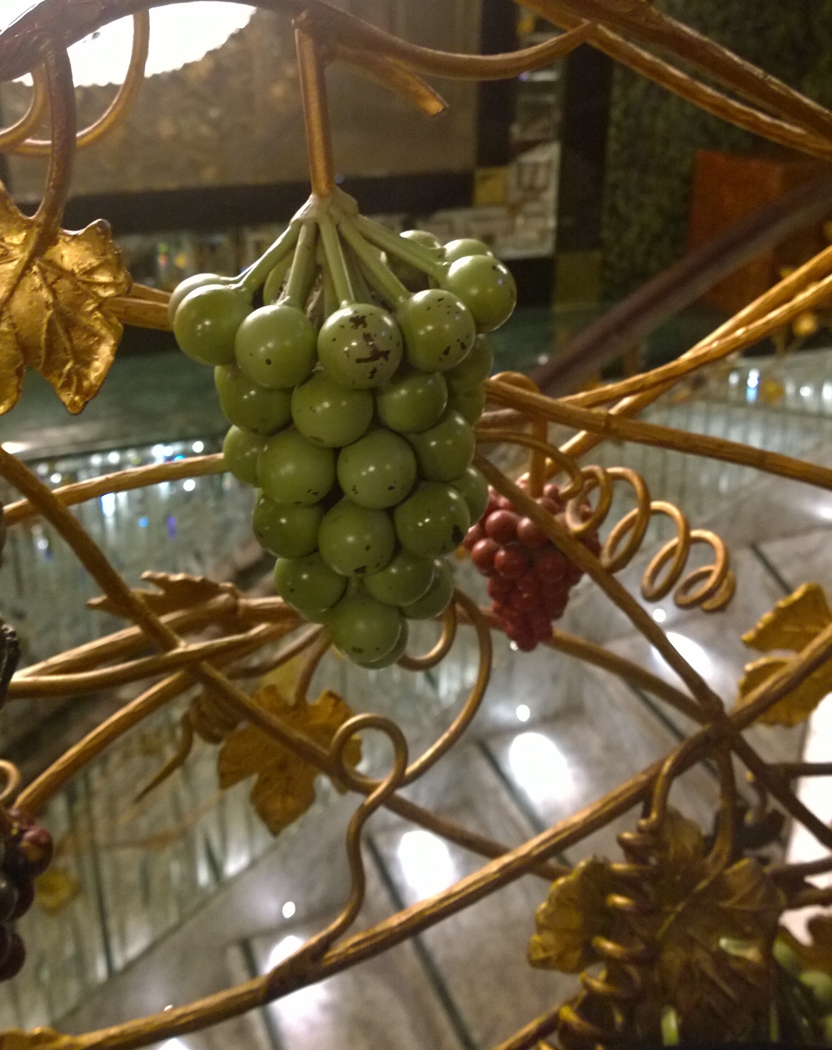 Herr Teufelskreis_20141123_16_01_38_ProWith this in mind we headed to Beaconsfield (just to the north-west of London) and headed to Crazy Bear. We were greeted by the staff and seated in the bar area, which was unlike anything that I had ever seen. I can only liken it to a decorating project which was the result of a joint venture between a champagne-sozzled interior designer and a footballer’s wife. It was completely over-the-top and, frankly, bordering on vulgar. There were outrageous chandeliers and faux French-chic tables and chairs. Even the staircase to the toilets was adorned with rather large vines and bunches of grapes. We were somewhat overwhelmed by the extravagances of the bar and found them somewhat comical. In the bar, I had a Goji Martini (Tanqueray Gin, Goji Berry Liquer and Lemon Sorbet), which I was pretty disappointed with, finding it overly sweet.