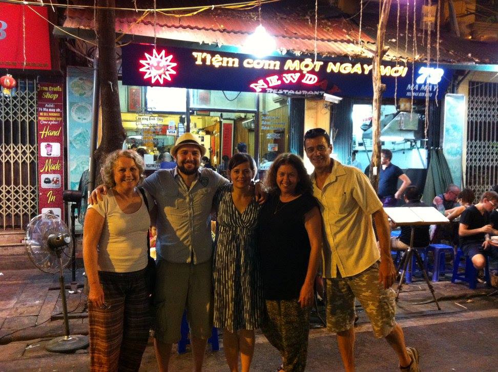 On our very first day, still suffering from jet lag we were delighted to have the opportunity to meet up with some relatives of ours that live in Australia but were fortunately in Hanoi at the same time that we were. Considering that we hadn’t planned it this way, it was serendipitous to say the least. They had been in Hanoi for a few days and took us under their wings and guided us to a restaurant that they told us we had to visit – New Day in the city’s Old Town district (immediately north of Hoan Kiem lake).