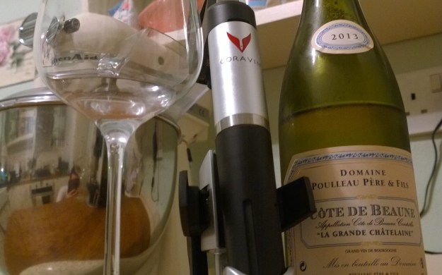I thought it only fair that I put the Coravin through its paces so that I could report back to you, dear readers. So, on New Year’s Eve I cooked a nice meal for my wife and I, which featured a rather magnificent (if I do say so myself) salt-baked Arctic Char. To go with this I had picked a bottle of 2013 Domaine Poulleau Père et Fils “La Grande Châtelaine (Côte de Beaune, Burgundy). We only really wanted to have a glass each of the wine as we were going to move onto Champagne after dinner to see in the New Year; it seemed the perfect opportunity to try out the Coravin. The Coravin itself worked fine, it wasn’t particularly hard to use – but the effectiveness of the system was really going to be tested when we tried the wine again…