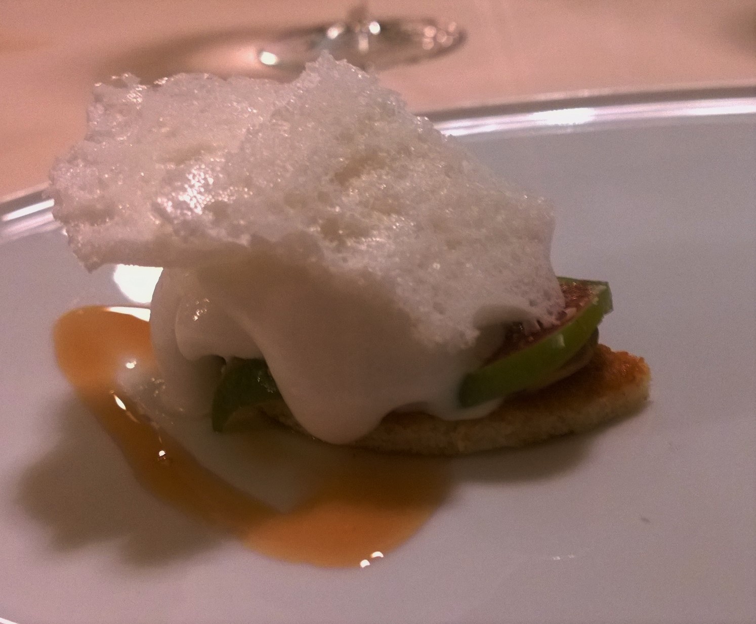 Our first pudding course was once more magnificent in its straightforwardness – Marinated Figs served with Almonds and Milk Flavoured with Mint. The dish, I thought, was not the most visually attractive, but the flavours and textures were very good. I thought that the idea of turning the milk into something of a semi-fredo, which gave both a nice textural and temperature contrast. In truth, by this point however, the wine had softened some of my critical faculties I think.