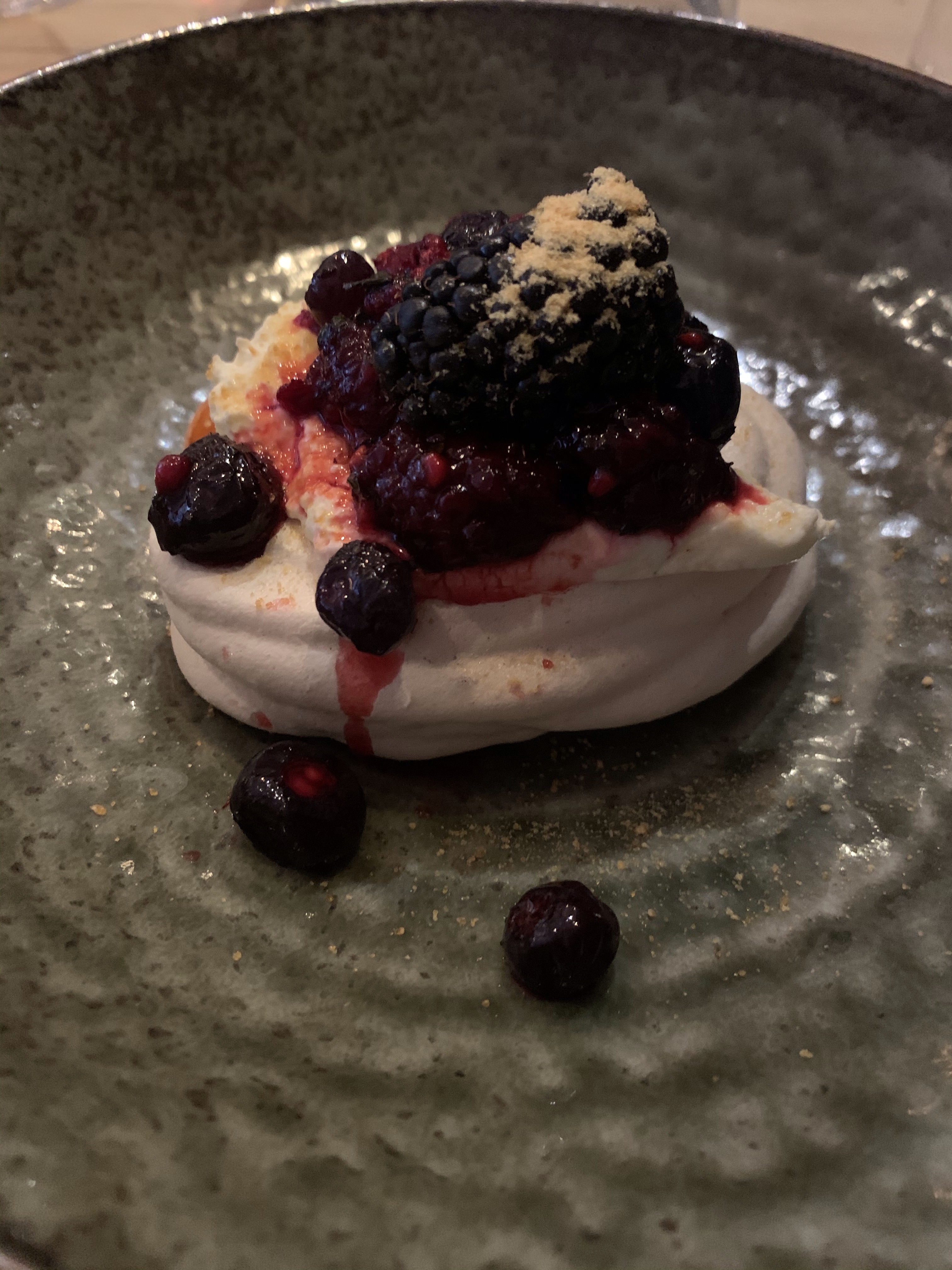 Time for the puds! First up was a lovely and light morsel of summer-berry pavlova. The meringue was divine, crunchy on the outside, sticky and chewy on the inside. Just fabulous! This was then followed up by the slightly heavier chocolate brownie served with a medley of dried raspberries, fresh raspberries and raspberry sorbet. I mean, you can’t go much better than a delectable home-made brownie served with varying textures of raspberry – it’s the stuff of dreams! We’ve had the odd dessert during lockdown (who hasn’t), but desserts are one of those areas that I just think are better done by professionals. This was a rather lovely way to round off the meal.