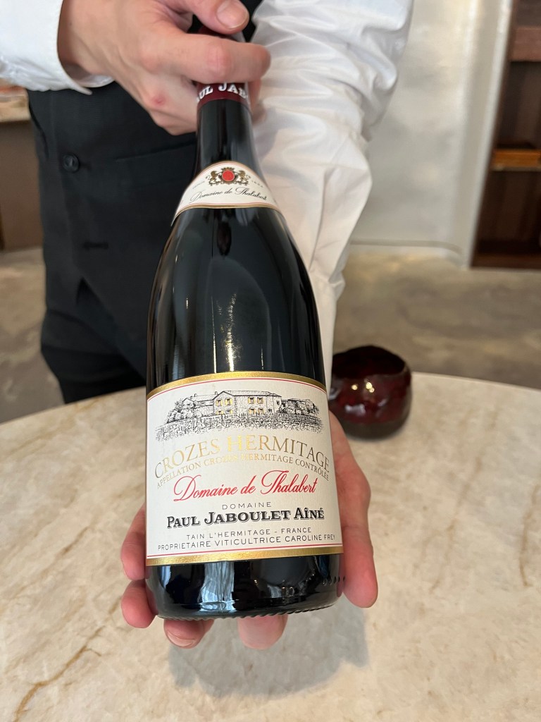 At this point some of you may be wondering about the wine situation with the meal. In recent times I’ve taken to avoiding the accompanying wine flight as I sometimes feel you don’t get the best they have to offer, and you also end up drinking more. Instead, I have gone for picking an excellent bottle that you think will work across the menu. This is what I did here, going for a 2012 Paul Jaboulet Ainé ‘Domaine de Thalabet’ Crozes-Hermitage. I’ve been buying wines from Jaboulet en Primeur for a little while now and have a decent selection of these – both the Thalabet and also the ‘La Chapelle’ and from Hermitage. These wines were all brought to celebrate nieces’ and nephews’ births and to be brought out at their 18ths, so any excuse to drink some now to whet the appetite is welcome!