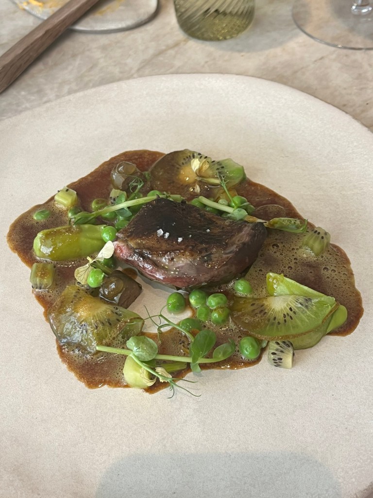 Alongside this you get a combination of Japanese and south-western French influences. I must admit, seeing thin slices of kiwi fruit on the plate did mess with my head a little – but it absolutely worked a wonder. The peas had a lovely structure to them, definitely on the al dente side of cooking, which gave the dish a bit of texture. Alongside the pigeon breast there were a few morsels of pigeon made from a mix of pigeon liver and wing meat, that gave the dish some slightly deeper, earth textures and flavours.
